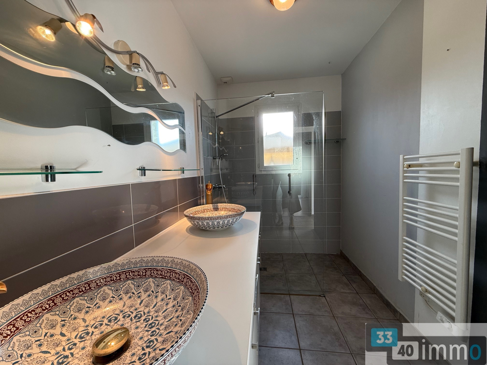 L'espace nuit dispose de 3 chambres, une salle d'eau avec double vasque et douche à l'italienne et un wc indépendant.