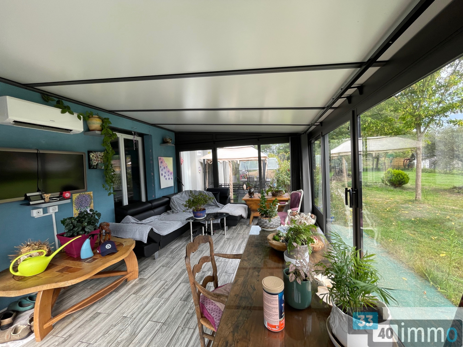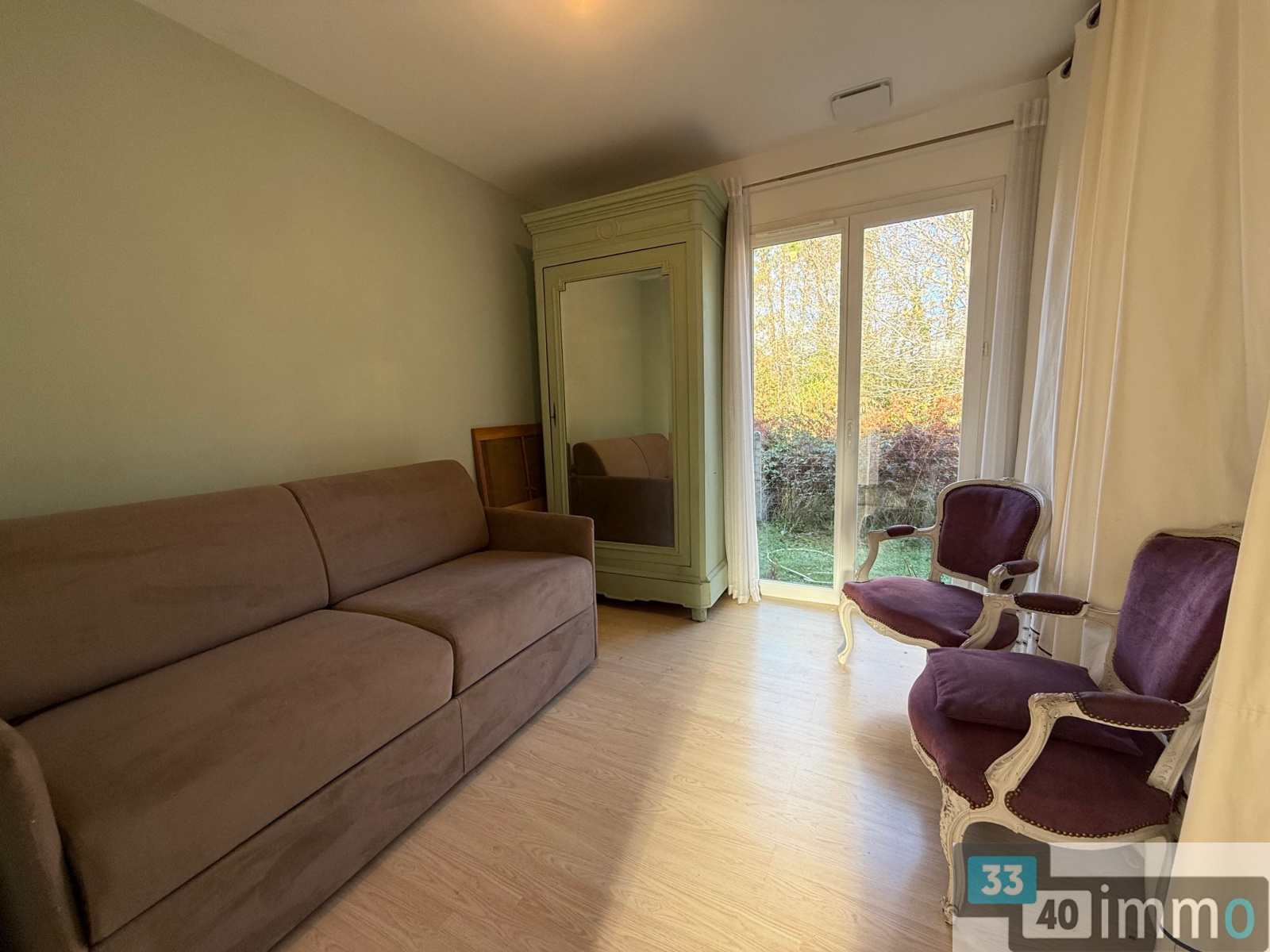 A l'extérieur un garage, le tout sur un très beau terrain clos et arboré de 1700 m2 en lisière de forêt.