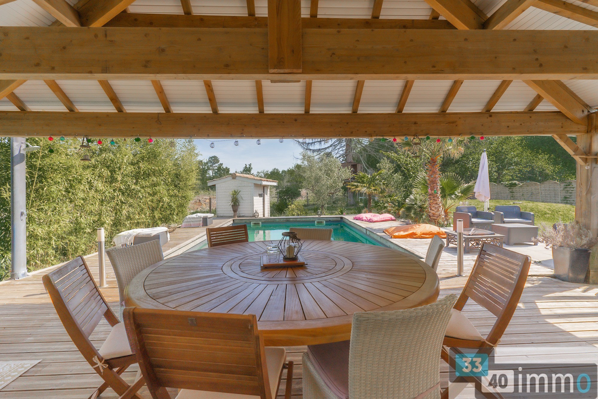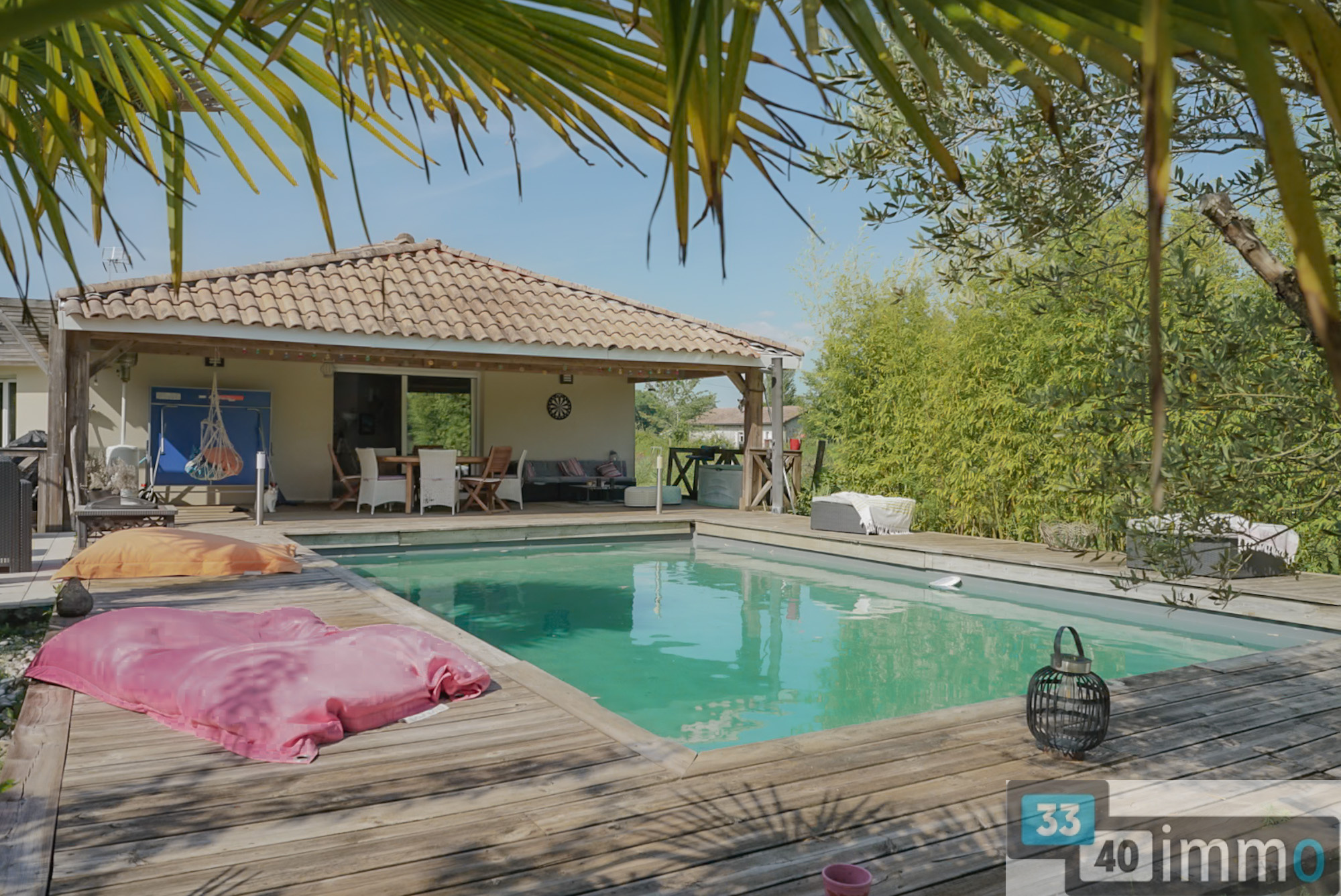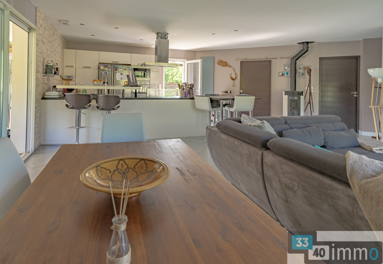 L'entrée est clairement délimitée et dispose de rangements intégrés. Elle ouvre sur une pièce de vie de 52 m², largement vitrée et exposée plein sud. La cuisine aménagée est ouverte sur l'espace salon et salle à manger, offrant une organisation fluide et fonctionnelle. Un poêle à granulés équipe la pièce pour la saison hivernale. En continuité, une grande terrasse couverte prolonge naturellement l'espace de vie vers l'extérieur et la piscine. La maison développe trois chambres, dont une suite parentale avec dressing et salle d'eau. Une salle de bain indépendante complète l'espace nuit, avec baignoire de grande dimension et double vasque. Les peintures ont été récemment refaites dans des tons clairs, apportant luminosité et cohérence à l'ensemble. Les chambres d'enfants sont équipées d'un parquet posé en chevron. La cuisine bénéficie également d'un accès extérieur direct vers une terrasse bois qui fait le tour de la maison, renforçant la relation entre intérieur et extérieur. L'architecture est résolument contemporaine. Le terrain, paysagé, offre une vue dégagée sur la parcelle et la forêt. L'environnement garantit l'absence de vis-à-vis et une réelle tranquillité. Une dépendance entièrement aménagée de 36m2 permet d'accueillir famille ou amis, ou de créer un espace indépendant. Elle comprend une salle d'eau, des toilettes, un espace de vie et une chambre en mezzanine. Un abri vélos en bois de grande capacité complète les annexes. L'assainissement individuel est conforme. Les écoles maternelle et primaire sont accessibles à pied en quelques minutes. Salles est une commune dynamique du Val de l'Eyre, appréciée pour son cadre de vie entre forêt et bassin. Sa situation permet un accès fluide vers Bordeaux et le Bassin d'Arcachon.