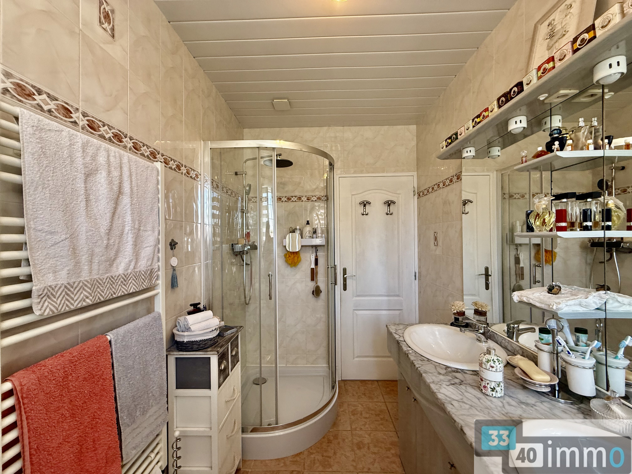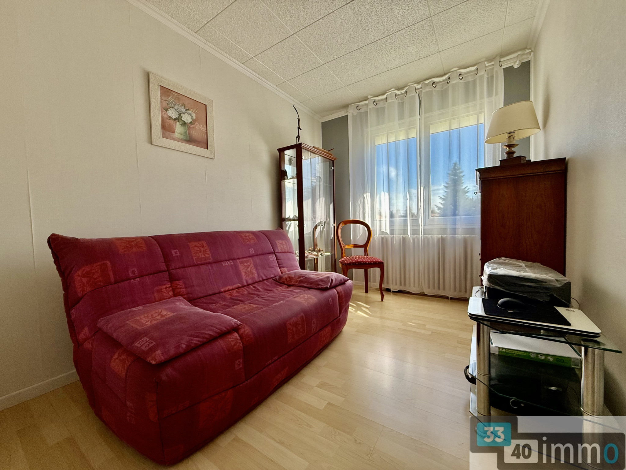 À l’étage, vous découvrirez une entrée accueillante desservant un salon-séjour lumineux, une cuisine indépendante aménagée et équipée, ainsi que trois chambres confortables. Une salle d’eau avec WC complète cet espace de vie fonctionnel.