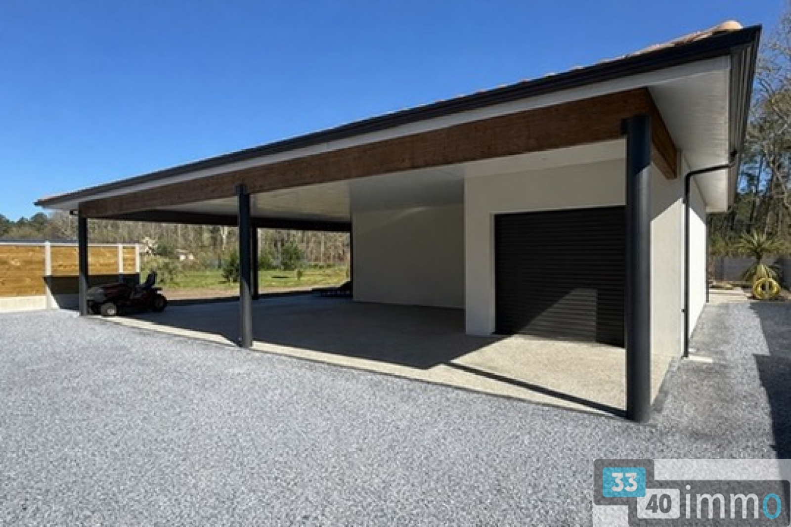 À l’extérieur, vous profiterez d’un garage attenant ainsi que d’une agréable terrasse couverte, ouverte sur un magnifique terrain d’environ 1 700 m², au calme, en lisière de forêt.