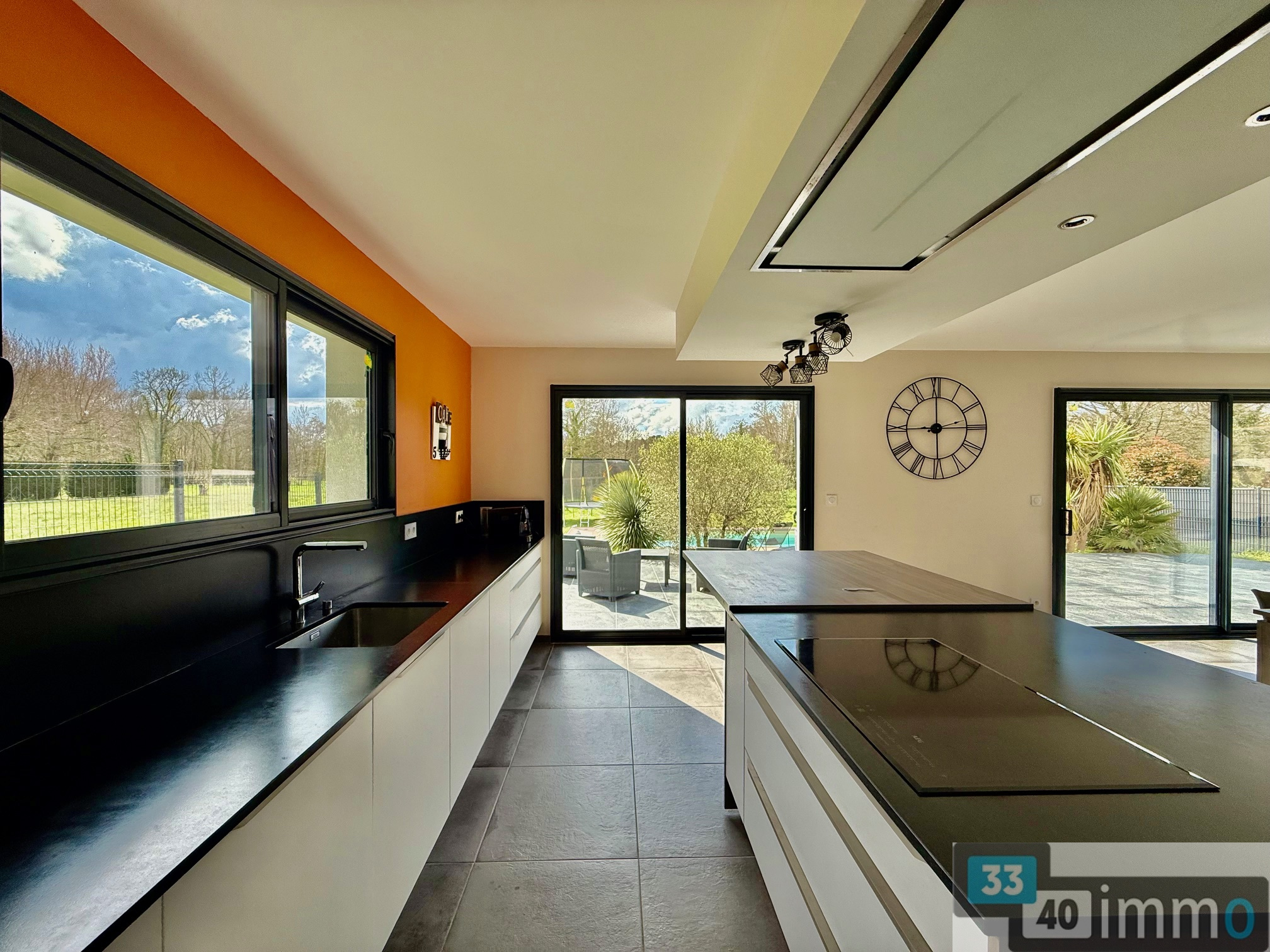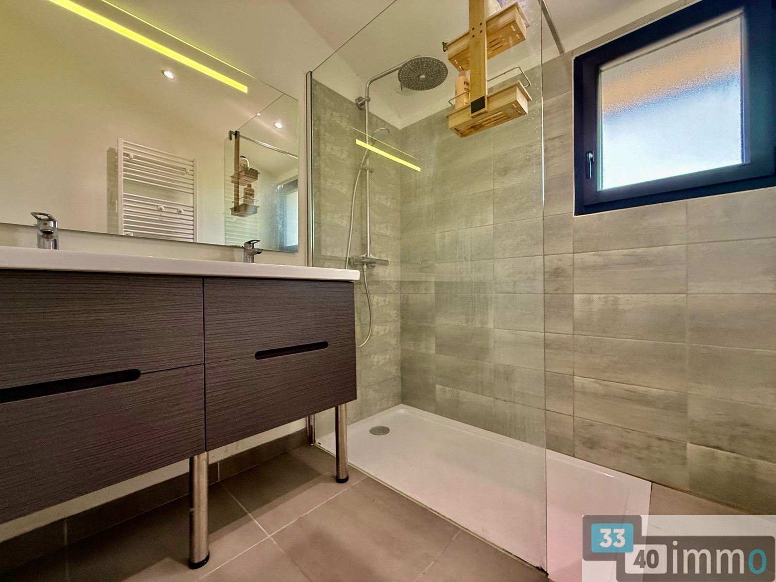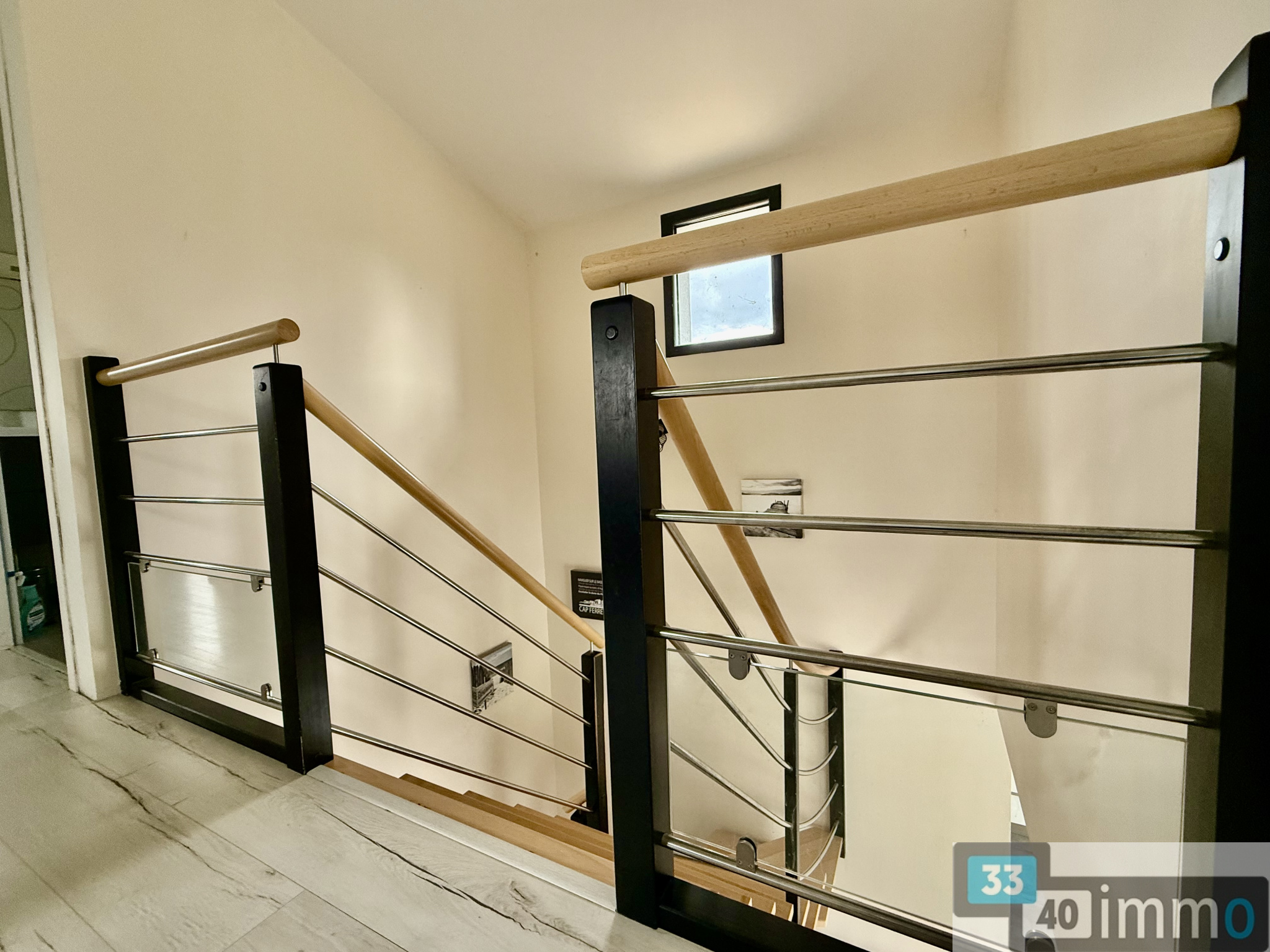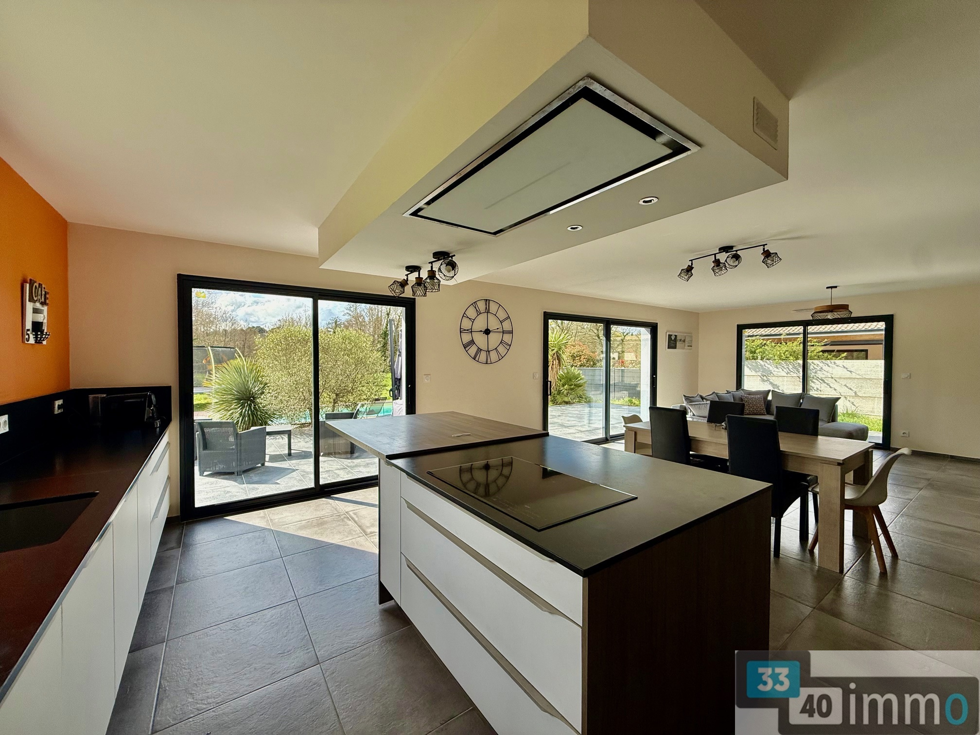 Idéalement située au calme et à proximité du centre de Salles, cette magnifique villa contemporaine RT 2012 de 174 m² vous séduira par ses volumes généreux, sa luminosité et la qualité de ses prestations.