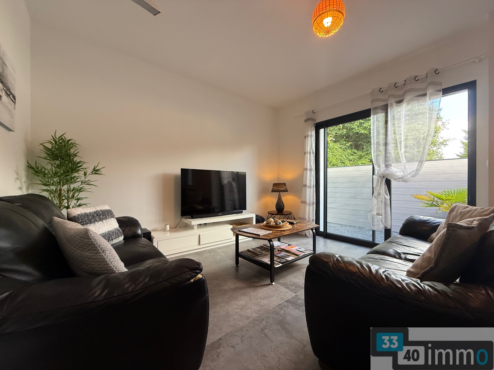 La maison principale s’ouvre sur une belle entrée agrémentée de rangements, puis sur une vaste pièce de vie baignée de lumière de près de 90 m², où la cuisine ouverte, aménagée et équipée, invite à la convivialité.