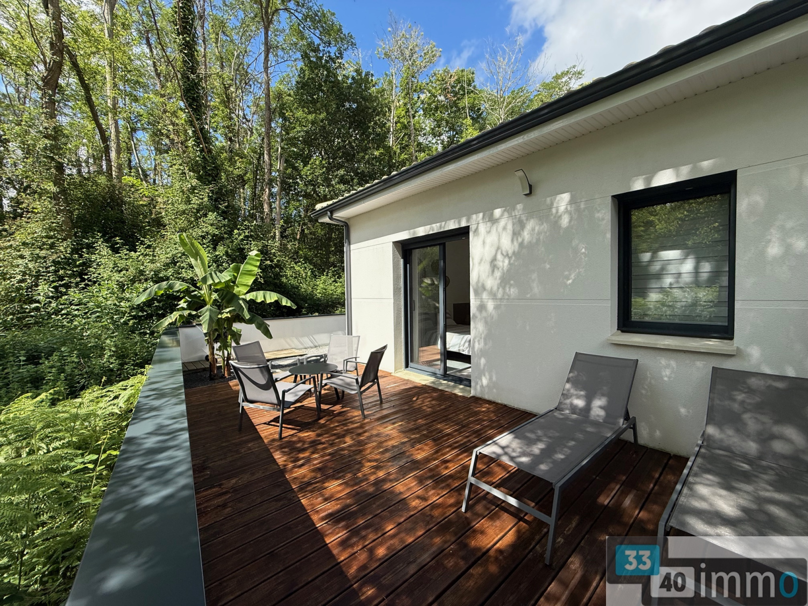 La seconde maison, de plain-pied également, offre une pièce de vie lumineuse avec cuisine ouverte de 28 m², trois chambres, une salle d’eau et un WC.