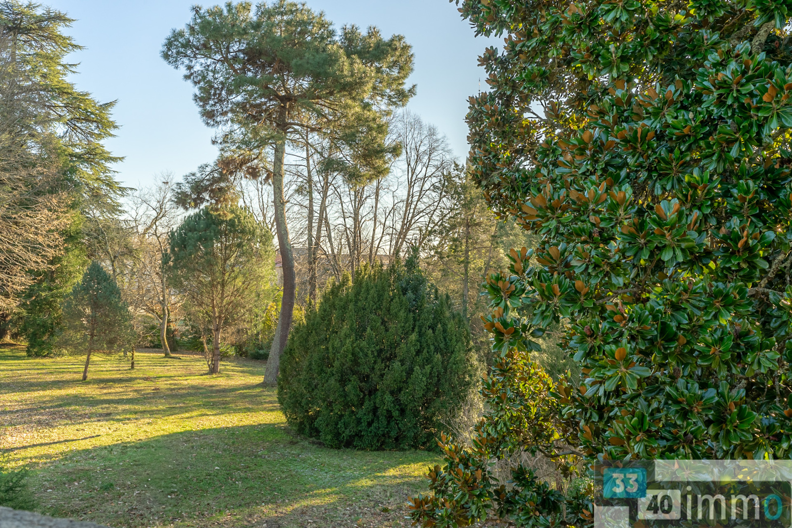 Le terrain, arboré, accueille un espace paysager en fond de parcelle traversé par un ruisseau. L’environnement immédiat reste en retrait tout en étant en centre-ville.