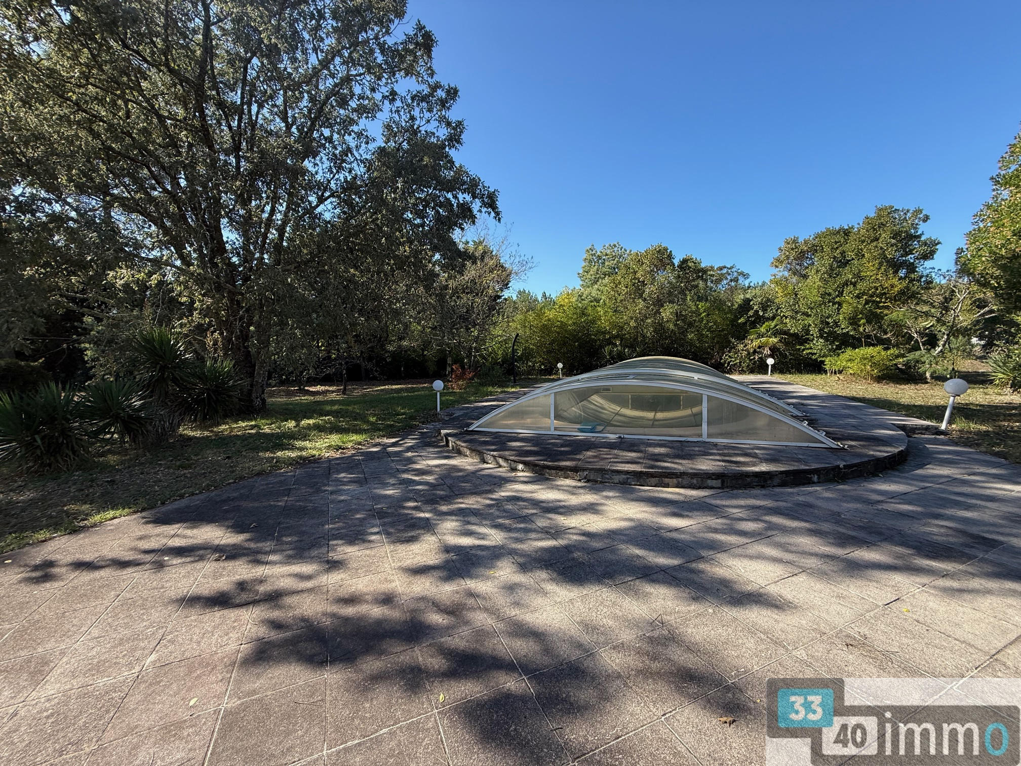 A l'extérieur une terrasse et une piscine de 12.5 x 5 dans un écrin de verdure sur une parcelle de 4700 m2.