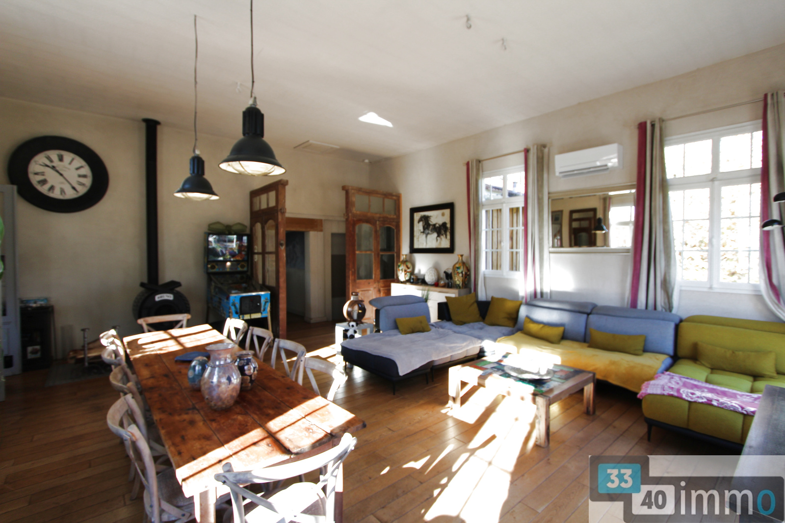 Ancienne école de 1888 entièrement rénovée mélangeant histoire et modernité de 160 m2, composée au Rdc, d'une grande entrée, une pièce de vie lumineuse de 51 m2, une cuisine équipée et aménagée, un boudoir avec son bar, une grande chambre, une salle de bain complète et un Wc indépendant.